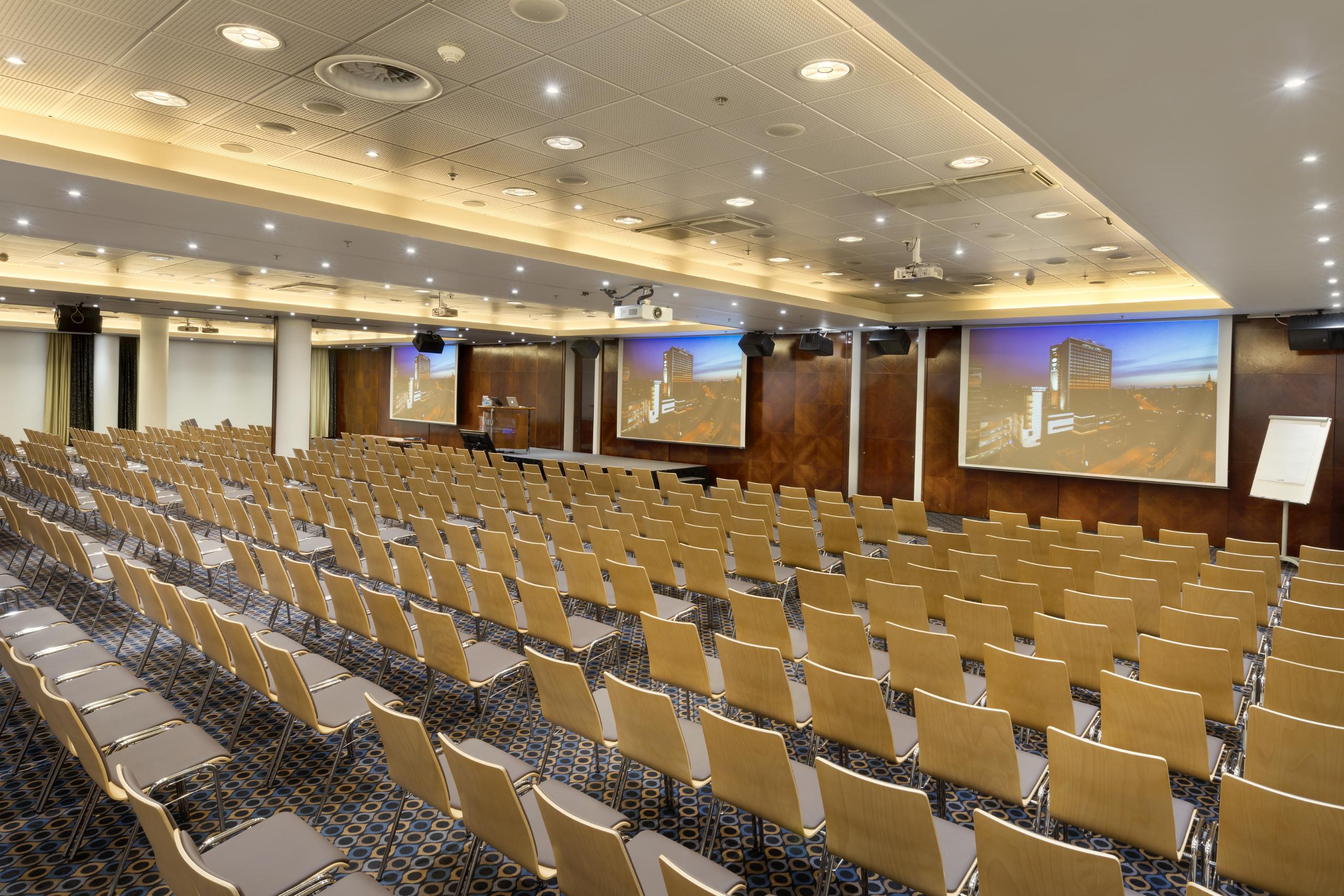 Külalisi teenindavad omaette avar fuajee ning garderoob. Erisuuruseid konverentsiruume on võimalik helikindlate vaheseintega ja vastavalt vajadusele kombineerida. Asukoht linnasüdames ning lai valik muid teenuseid teevad sellest ühe mugavaima paiga oma ürituste korraldamiseks.Konverentsikeskuse suurim saal Grande mahutab kuni 500 inimest. Hotelli professionalane konverentsitiim pakub parimad lahendused kliendi erinevate soovide ellu viimiseks, olgu teemaks virtuaalne või hübriidkonverents, töine koosolek, pidulik vastuvõtt või gala-õhtusöök.