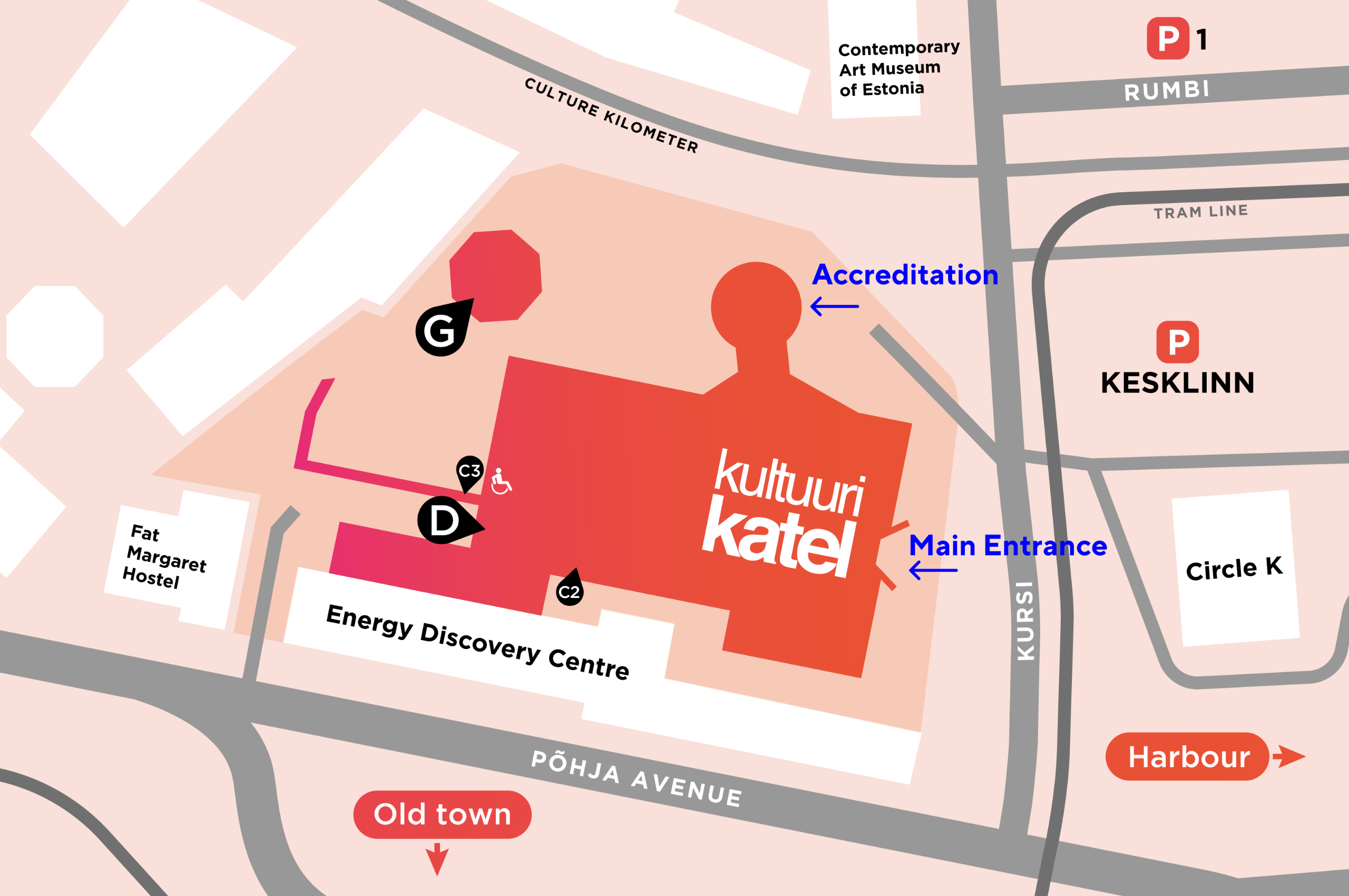 Kultuurikatlasse pääseb hõlpsasti nii ühistranspordiga kui ka taksodega. Lähedal on ka parklad.