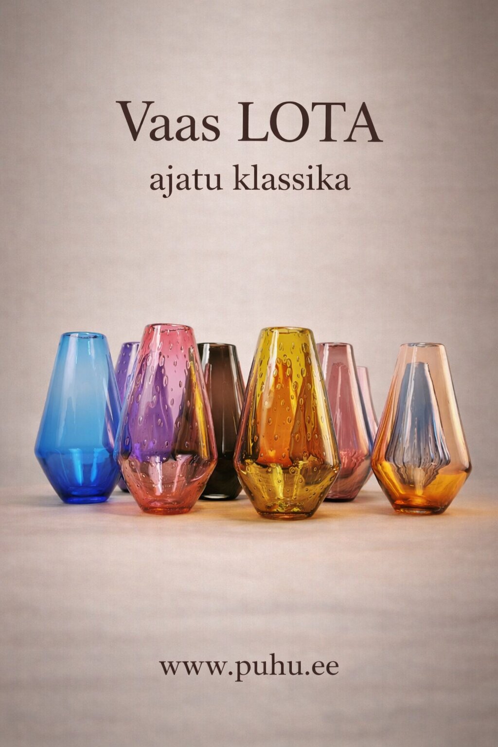 Stuudio loomingusse kuuluvad vaasid, kannud, joogiklaasid, kausid, valgustid ja skulptuurid – ajatud kodukujunduselemendid, mis toovad ruumi isikupära ja soojust.